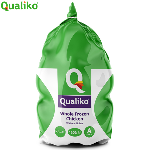1.2kgx10 QUALIKO HALAL WHOLE RAW GRILLER CKN IQF, CALIBRATED CHICKEN 10 PER BOX
