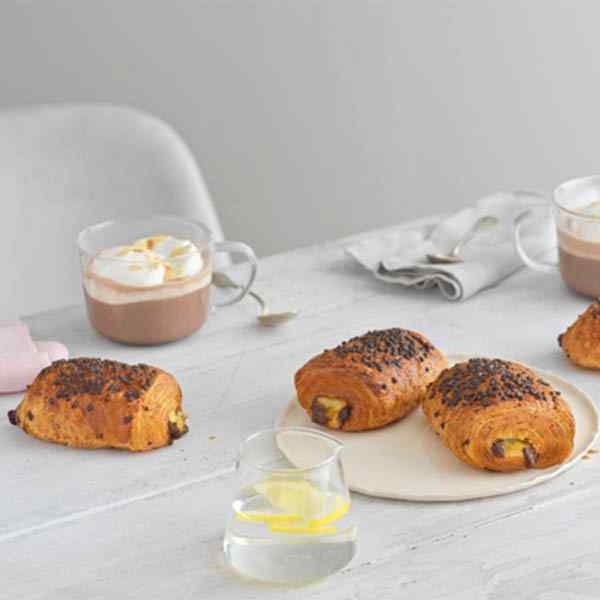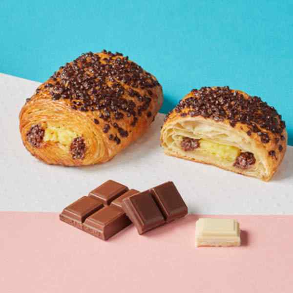 Three types of chocolate, giving you three different flavours and textures: an ultra-indulgent recipe that will fill you with desire… A heart of white chocolate surrounded by two bars of milk chocolate inside a very indulgent Extravagant covered with dark chocolate chips.