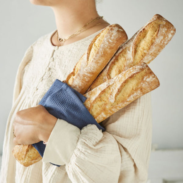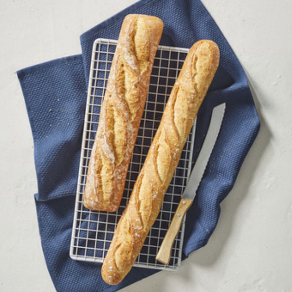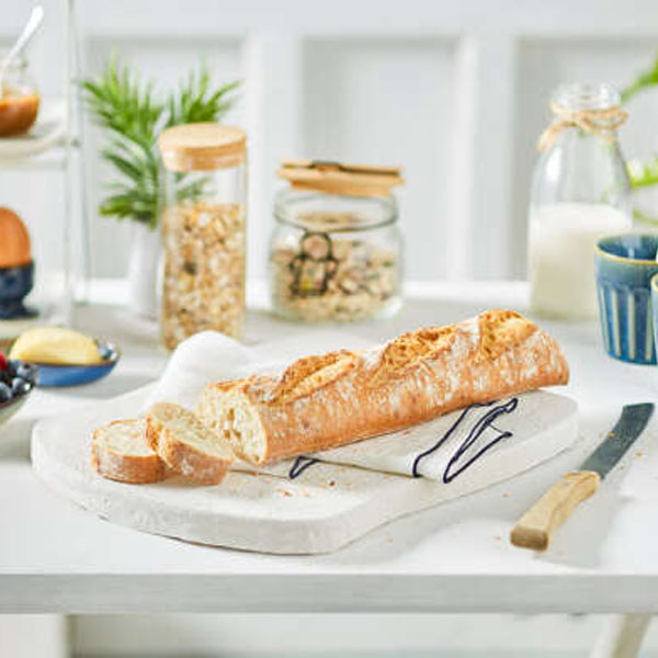 A rustic and generous baguette with well-loved flavours, shorter and wider than a traditional baguette. Made with "Label Rouge" wheat flour, it has a lovely cream-coloured open crumb.