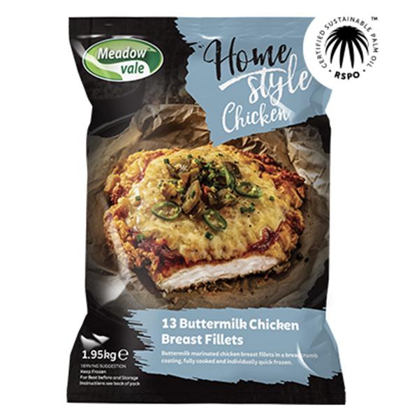 - 13 individual 150 g chicken breast fillets coated in an authentic buttermilk marinade