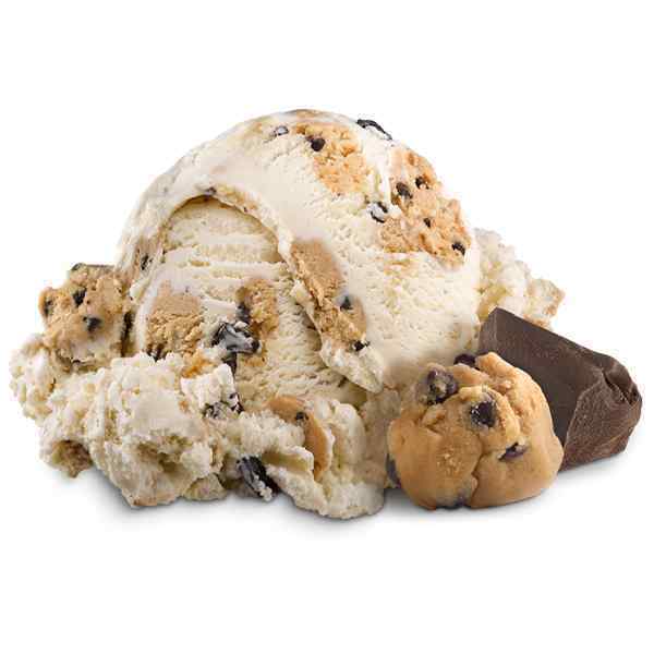 Vanilla ice cream with chunks of chocolate chip cookie dough and chocolatey chunks