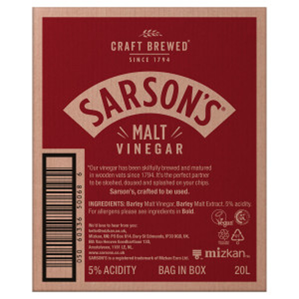 Barley Malt Vinegar 1x20litre. Barley Malt Vinegar. 5% Acidity.