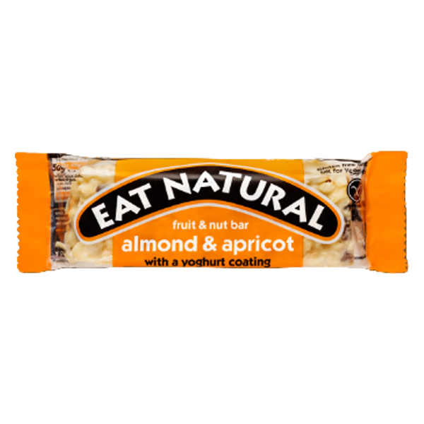 EAT NATURAL ALMOND & APRICOT (GF) 12 x50g FRUIT & NUT BARS WITH YOGHURT COATING