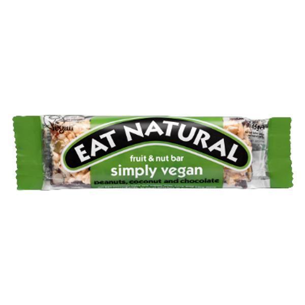 EAT NATURAL SIMPLY VEGAN (GF) 12 x 45g FRUIT & NUT BARS WITH PEANUTS, COCONUT & CHOCOLATE
