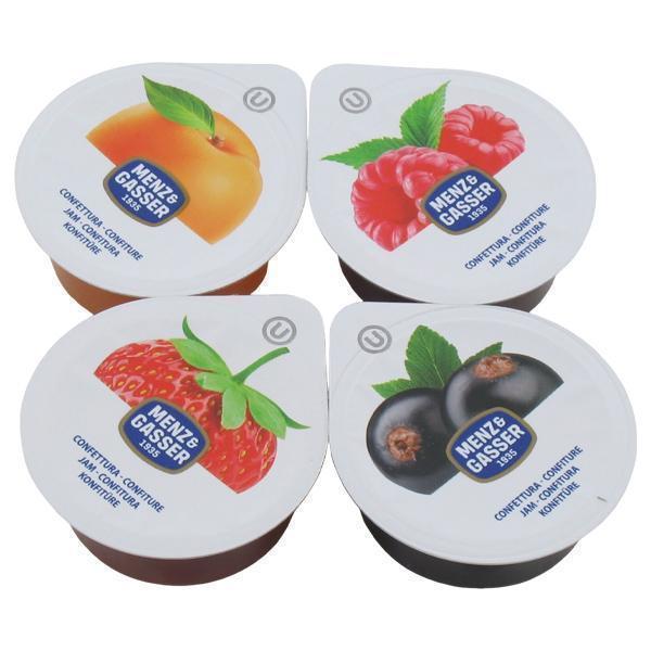 Menz & Gasser’s Assorted Jam pack offers a convenient and delicious variety of single-serve fruit jams, made with high fruit content and free from artificial colourings, flavourings, and preservatives. Each portion comes in a white thermoformed pot, packed in a printed cardboard case, perfect for hotels, cafes, and catering services.