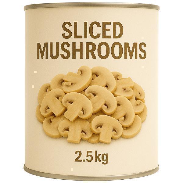 Sliced Mushrooms in salted water 6x2.55kg (net drained weight of 1.2kg per can).