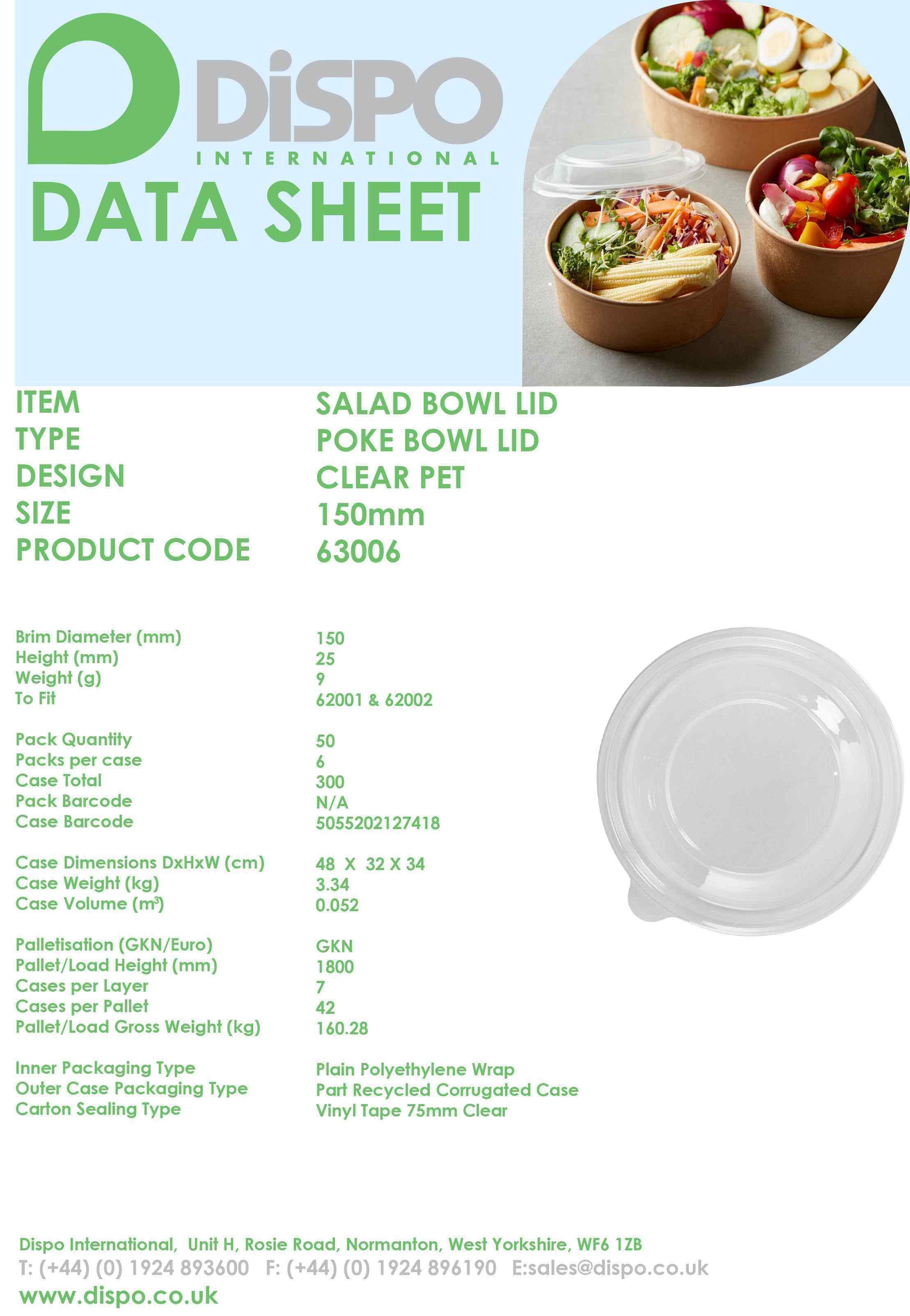 PET SALAD BOWL LIDS FOR 500ml & 750ml 6x50 CODE:63006 USED FOR GEA350/351