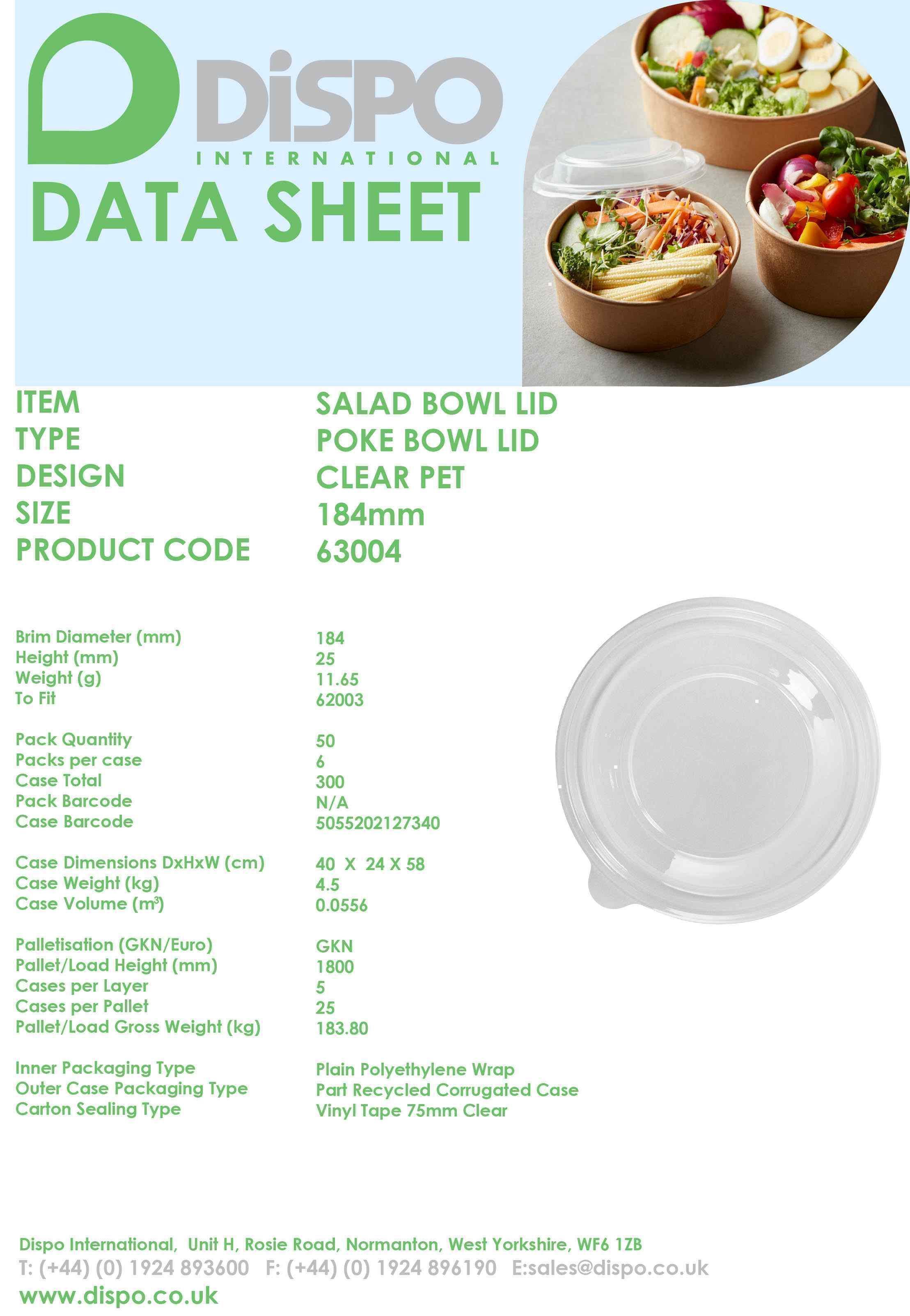 PET X LARGE SALAD BOWL LIDS FOR 1300ml 6x50 CODE:63004 USED FOR GEA353