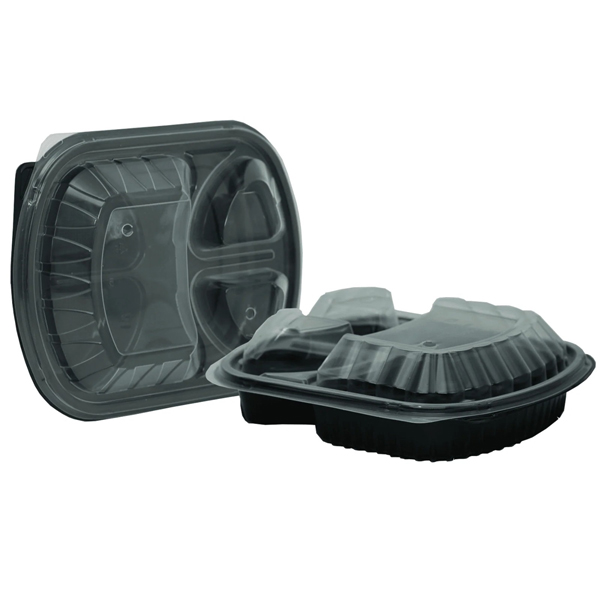 PP MENU BOX 3 COMPARTMENT WITH LIDS 250's 180mmx220mmx63mm (8"x9"x2.5")