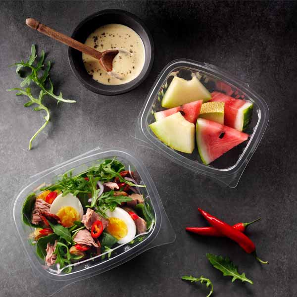 Hinged containers with a practical design kp Newleaf® hinged containers have a practical design and offer a cost-effective packaging solution for everything on the menu.