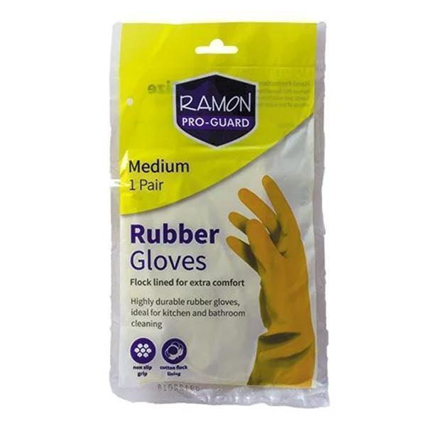 PRO-GUARD MEDIUM YELLOW RUBBER 1 PAIR GLOVES RAMON
