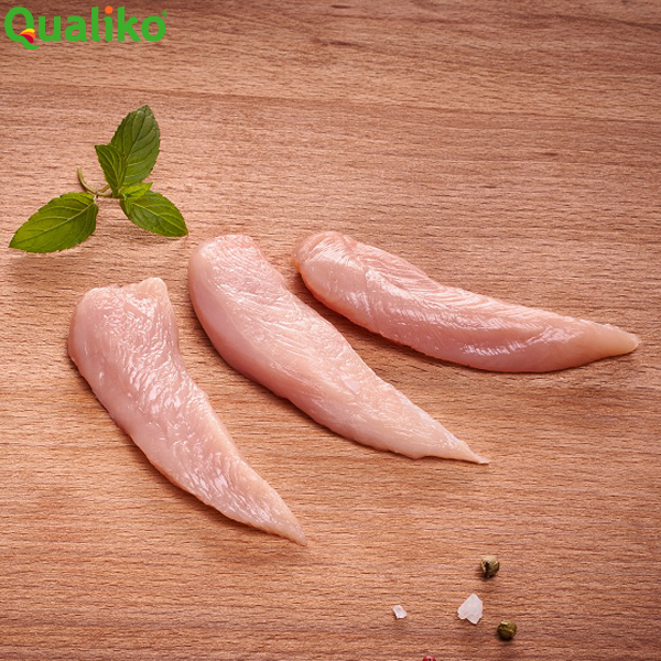 QUALIKO HALAL RAW CHICKEN INNER FILLETS 10kg FROZEN- CODE : 8045 UNCALIBRATED 60- 80gm