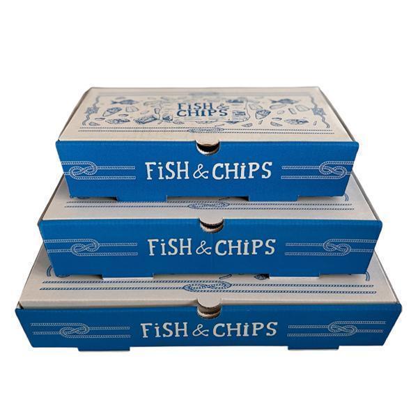 XTRAPACK MEDIUM 10.9" FISH & CHIPS BOX 100's BLUE PRINTED 275x154x54